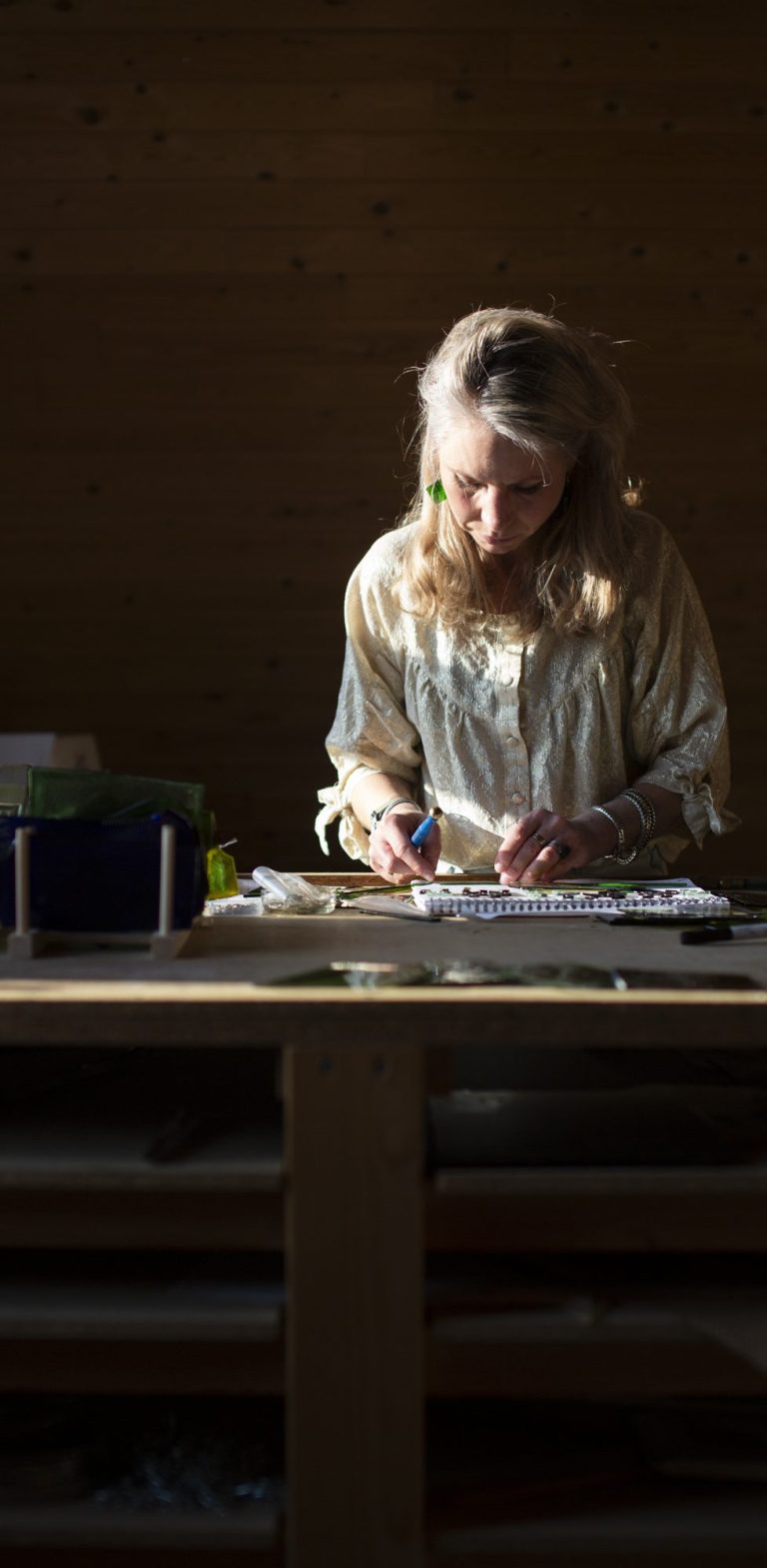 Al van jongs af aan heeft glas me betoverd. In kerken en oude kathedralen, in kroonluchters en kristal— het licht en reflectie had een magische aantrekkingskracht. Die fascinatie voor kleur, materiaal en vorm groeide verder op de kunstacademie en vond uiteindelijk haar plek in mijn eigen glasstudio.